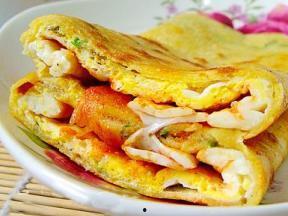 6. 卷饼:将煎饼卷起,切成小段,即可食用。